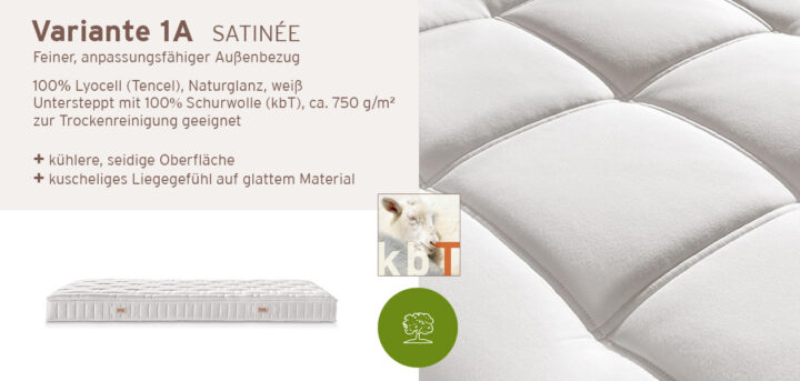 Unsere Empfehlung: die Matratze NATURAL CLASSIC von Dormiente im Bezug 1A Satinée.